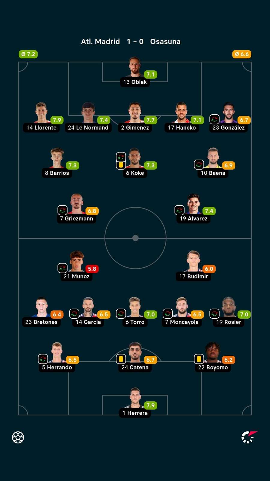 No último trecho, o quase empatou depois que Moi Gómez invadiu a área e passou para Budimir, que chutou sem oposição, mas o esloveno Jan Oblak desviou a bola com o pé para garantir a vitória.