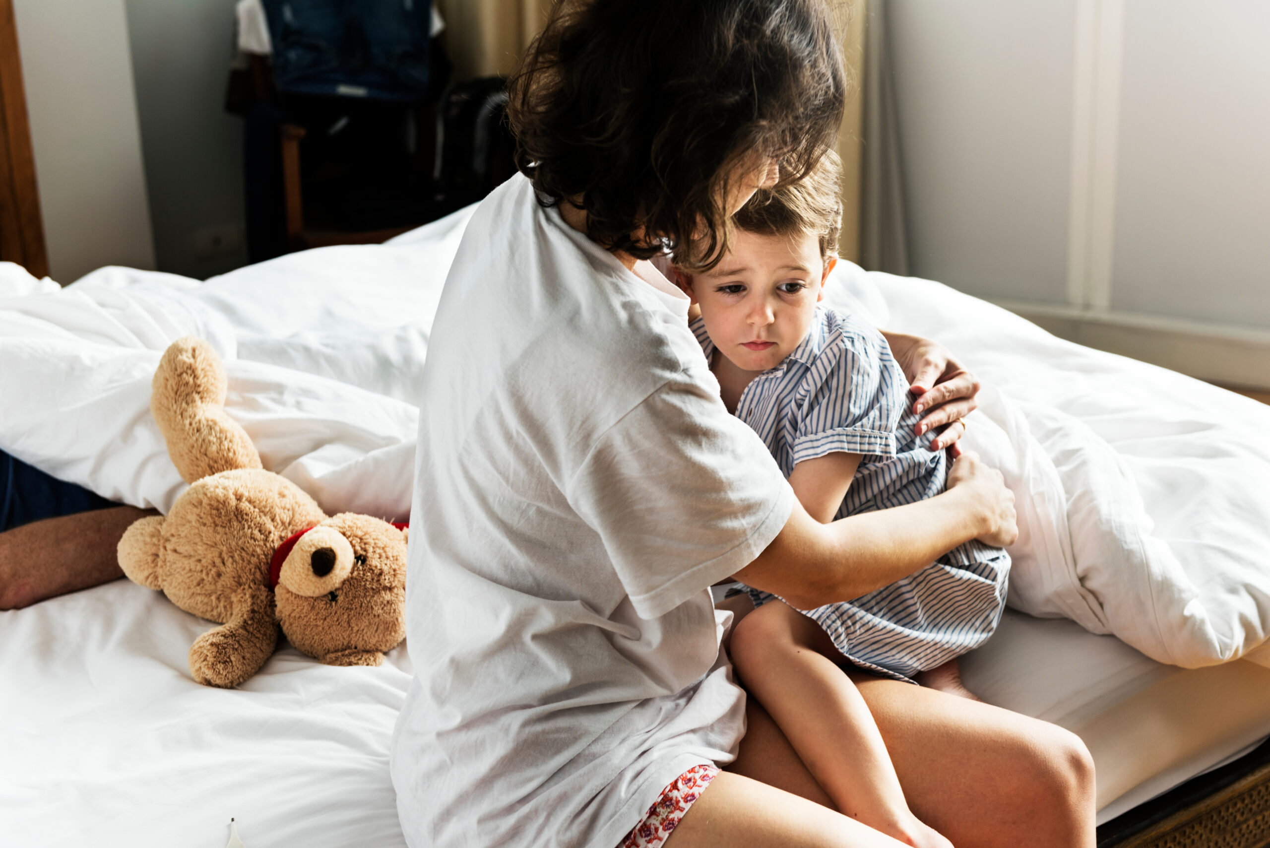 “A mamãe está bem aqui. Você está seguro. Você teve um sonho ruim e não é real.”