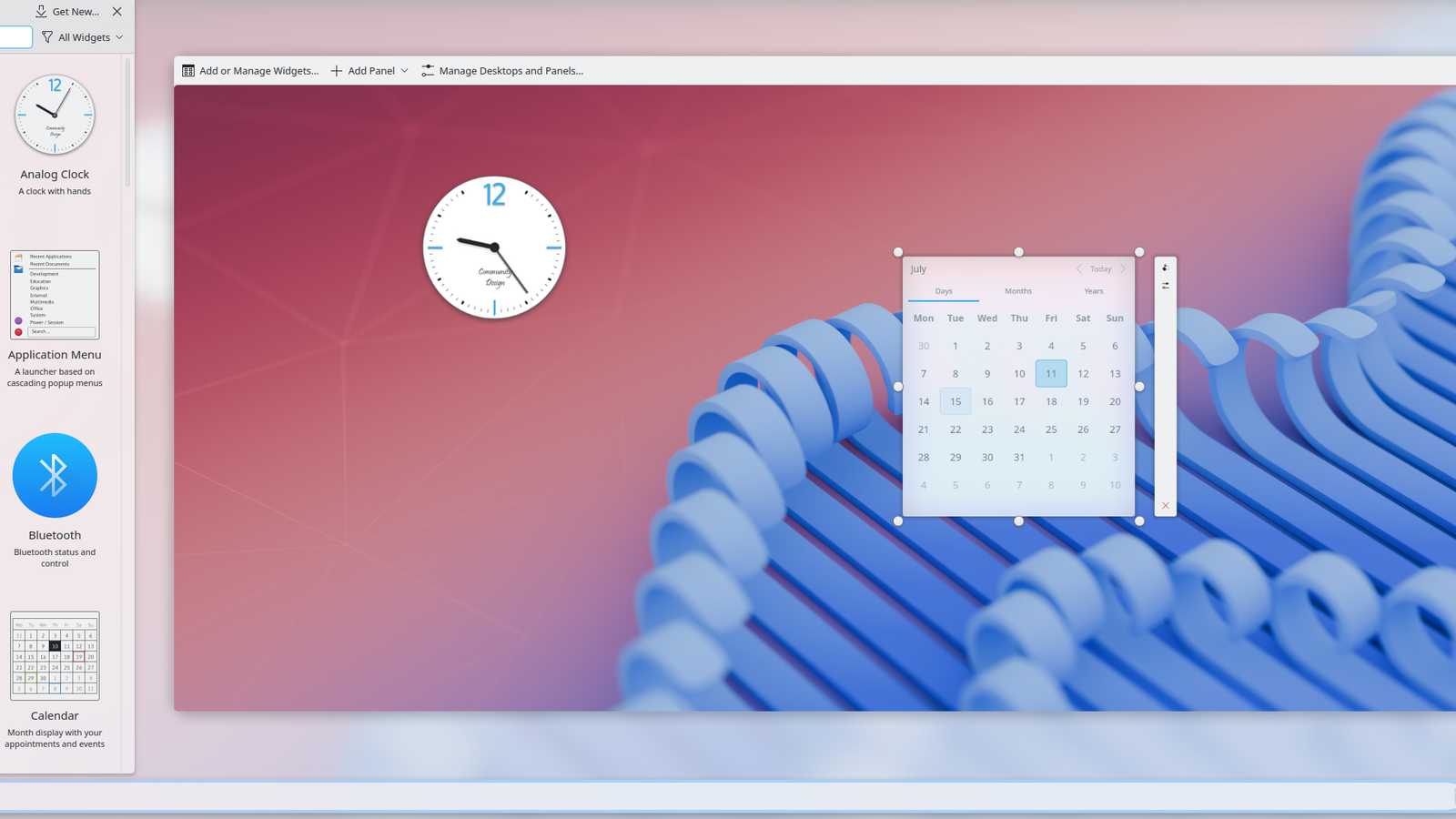 gnome-session-quit --no-promptNa tela de login, selecione seu nome de usuário, clique no botão de engrenagem no canto inferior direito da tela e escolha Plasma (X11). Após fazer login, clique com o botão direito na área de trabalho e selecione a opção ‘Adicionar Widget’. Você pode pesquisar e adicionar widgets existentes, baixar novos widgets do Plasma, instalar um de uma fonte local e configurar seus widgets.