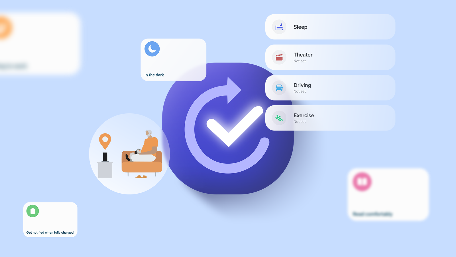 A Samsung possui vários modos integrados, mas você também pode personalizá-los para qualquer atividade que achar adequada. Além disso, esses tipos de controles podem ser ativados manualmente ou automaticamente em horários ou locais específicos, como 21h antes de dormir ou quando você chega ao escritório.
